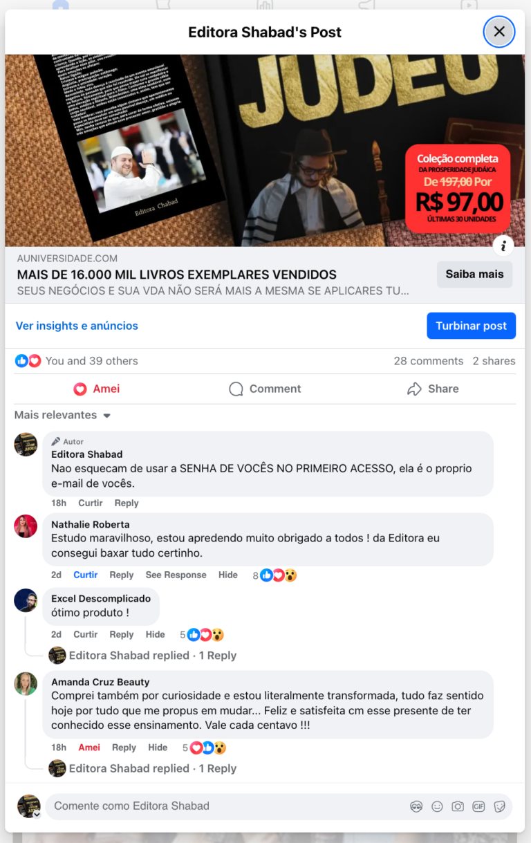 כל הזכויות והתרגום של המקור העברי לפורטוגזית מוגן בזכויות יוצרים בלעדיות על ידי המו”ל חב”ד ברזיל ושבד ישראל.